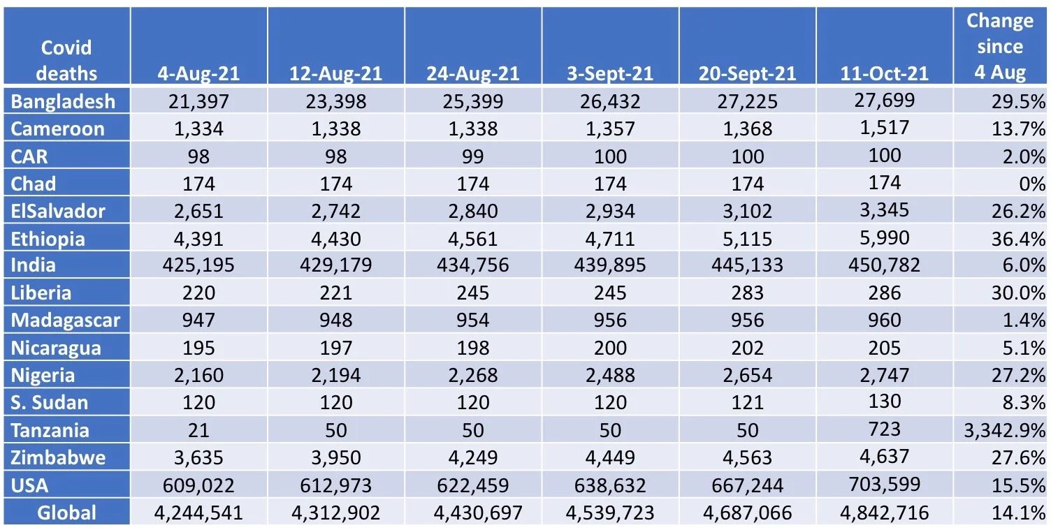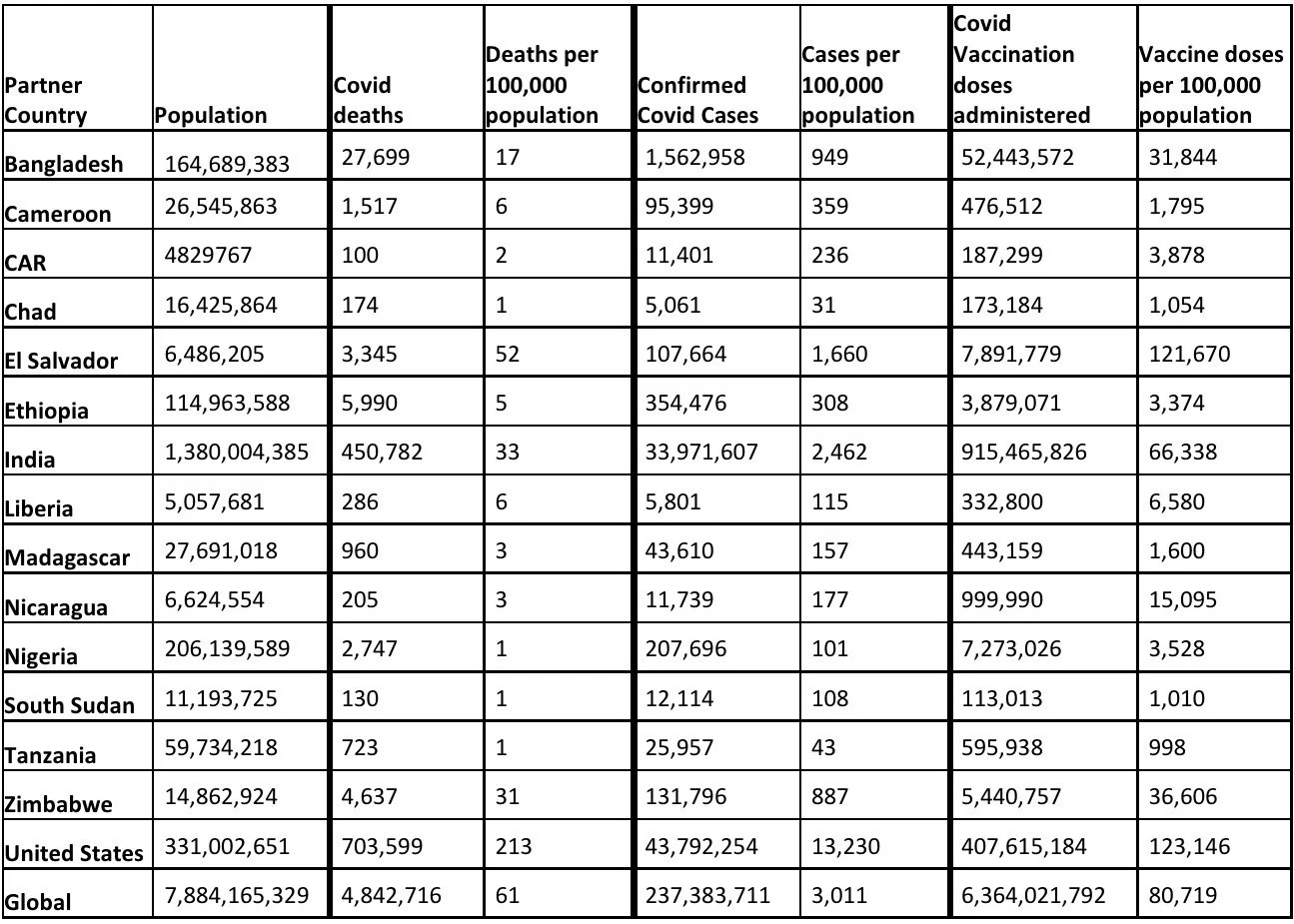 There was an increase of 14% in Covid deaths among GHM’s 14 partner countries during the past 9 weeks, as reported to WHO.