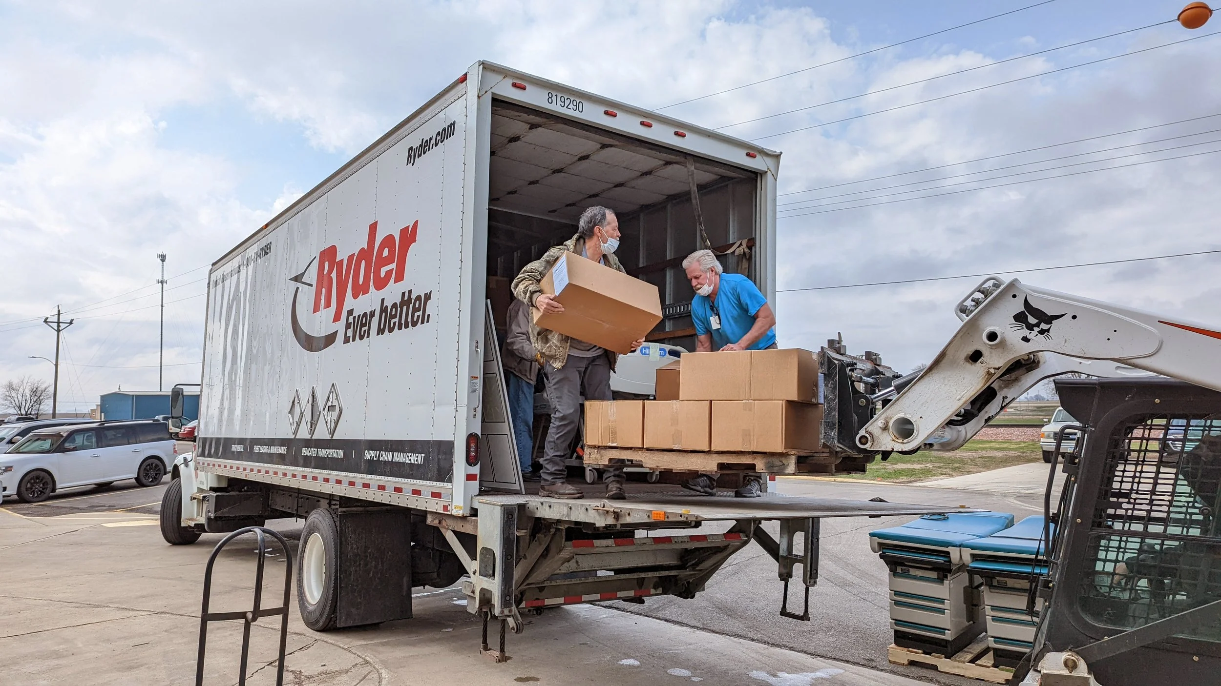 In April of 2022, GHM was scheduled to make a medical equipment pick up at a hospital in Iowa Falls, IA. Because there was still room on the truck, the hospital sent a message to other medical centers in their network. Curt Gast, Facilities Director at Hancock County Health System in Britt, Iowa, jumped at the chance to participate in the donation process. Since that time, Curt has regularly reached out to GHM with extra equipment that is still functioning but no longer needed. In June, HCHS gave its largest donation thus far: two exam tables, 1 PT table, 1 Blood Draw Chair and 24 Phillips Patient Monitors with extra cuffs.