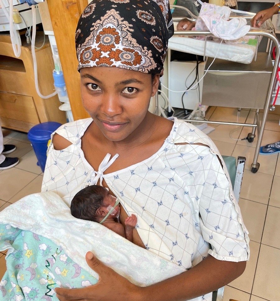 The Newborn Intensive Care Unit (NICU) at Arusha Lutheran Medical Centre (ALMC) is a busy place. Most days there are about 20 tiny newborns being cared for in the NICU, more than half of them preterm babies and all of them critically ill. Young mothers are referred from across northern Tanzania to this NICU, which is providing some of the highest-level neonatal care in Tanzania. Theresia is one of those young mothers. Her baby was born at just 26 weeks, weighing 760 grams (1.7 pounds). Theresia stayed with him every day in the hospital. After nearly 3 months, she and her son, an active, healthy baby boy, went home together.